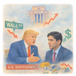 Les marchés évoluent sous tension, mais montrent une capacité de résistance malgré un environnement toujours incertain. Le shutdown américain alimente les tensions sur Wall Street, tandis que l’anticipation d’un statu quo de la Fed limite les prises de positions directionnelles dans un contexte de données d’inflation toujours élevées. La nomination de Kevin Warsh renforce les interrogations sur l’orientation future de la politique monétaire et soutient le dollar. La correction s’accentue sur les métaux précieux, l’or et l’argent étant pénalisés par le relèvement des marges du CME et le renforcement du billet vert, déclenchant des ventes techniques sur le secteur minier. L’once d’or s’affiche à 4 780$. En Europe, les marchés actions évoluent sans tendance marquée, les investisseurs privilégiant l’attentisme malgré la volatilité sur les matières premières et la correction des métaux précieux, les indices restant soutenus par des PMI légèrement mieux orientés. Le CAC 40 s’affiche à l’équilibre, faisant preuve de résilience. L’ajustement reste essentiellement sectoriel, sans propagation aux autres compartiments, traduisant une absence de stress systémique, soutenue par des publications de résultats globalement bien orientées. Apple affiche une hausse de 16% de son CA et de 19% de son BPA sur un an, portés par une progression de 23% sur les ventes d’iPhone 17. Meta grimpe de 9,5% sur la semaine, porté par un bénéfice net de 22,8 mds $ contre 21 attendu (+9% sur un an) grâce notamment à sa division IA. LVMH affiche une baisse de 7% à cause d’un repli de 3% sur la mode et la maroquinerie sur le trimestre. Les risques d’attaque militaire contre l’Iran s’éloignent, le Brent baisse à 66,10$ et le WTI à 62,02$.